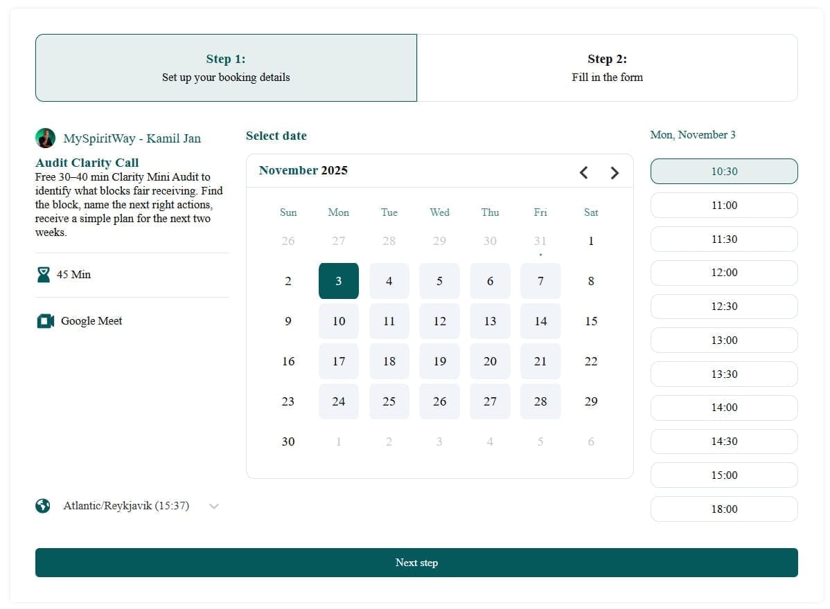 I’m Kamil Jan, creator of MySpiritWay and author of the Practical Spirituality Guidebook. I help spiritual creators build simple, ethical paths from content to clients — without losing authenticity. Nearly a decade in digital marketing.