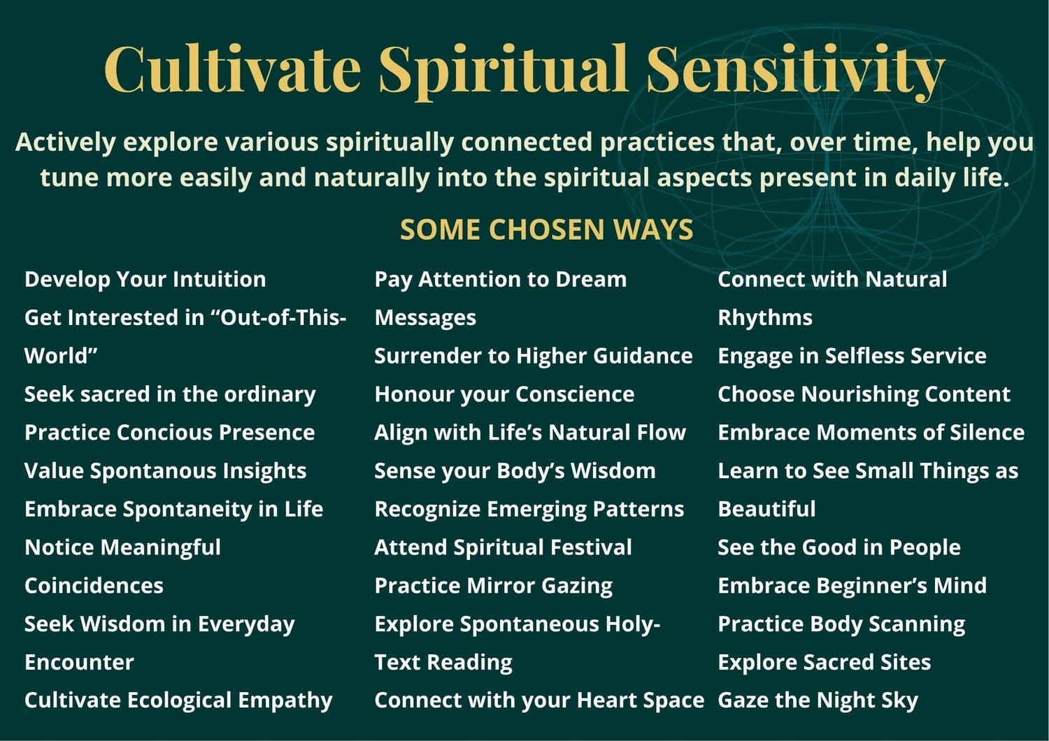 Actively explore a variety of spiritually connected practices that, over time, help you tune more naturally and effortlessly into the spiritual aspects woven into everyday life. As with anything we devote time and presence to, our connection deepens, and what once felt distant becomes part of our natural awareness.
